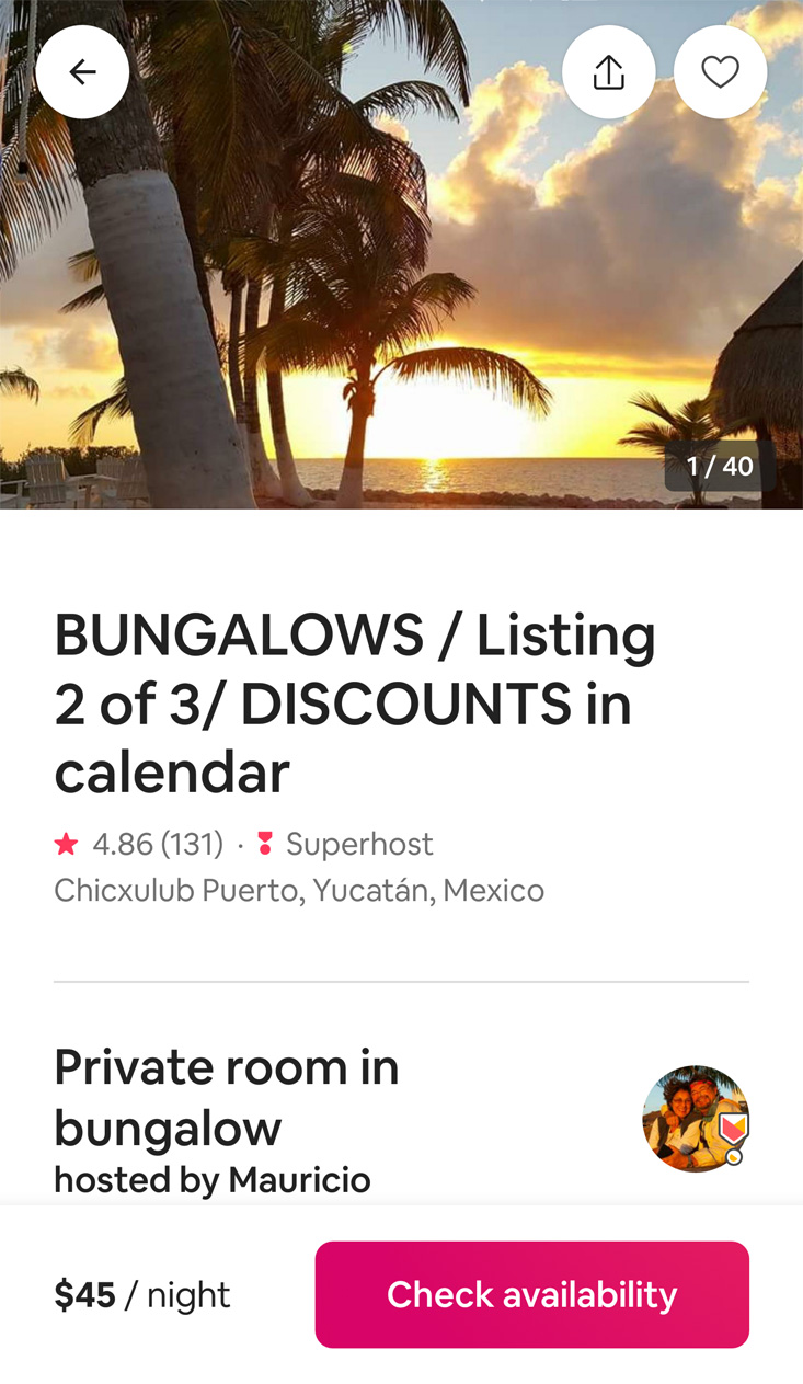 | **You can make your reservation trough the website Airbnb, just look for us in the Chixulub Puerto area, we have 3 listings there. |